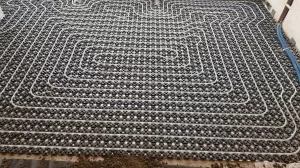 Укладка трубопроводом выполняется на основании предварительно подготовленной схемы. Для укладки труб применяют схемы разного типа. Для создания теплого пола могут быть использованы металлические, металлопластиковые или полимерные трубы. После укладки трубопроводы подключают к распределителю тепла (коллектору).